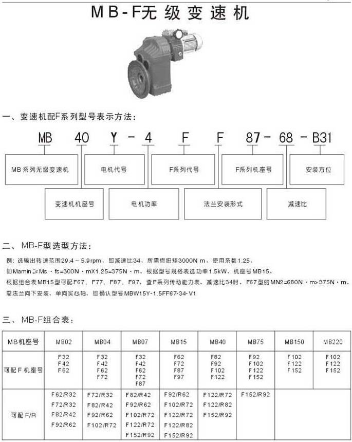MB-F無級變速機(jī)變速機(jī)配F系列型號表示法MB-F選型方法MF組合表